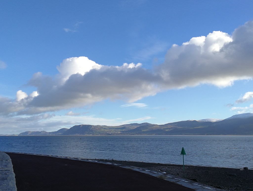 Beaumaris Pier and the views over the Menai Strait to Bangor and Eryri