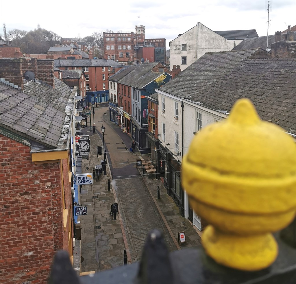 Macclesfield is over the border in Cheshire but only 11 miles from Buxton. It was an enjoyable trip despite the vagaries of the bus service – unreliable here as elsewhere due to a driver shortage and exacerbated by incorrect information on the company’s website. Once we got going it was an interesting journey – the road heads straight over the hills with expansive views and the bends and hills give it a reputation of being a dangerous road. En route we passed the Cat and Fiddle, a pub until 2015, now a whisky distillery – it was the second highest pub in England after the Tan Hill Inn in County Durham.