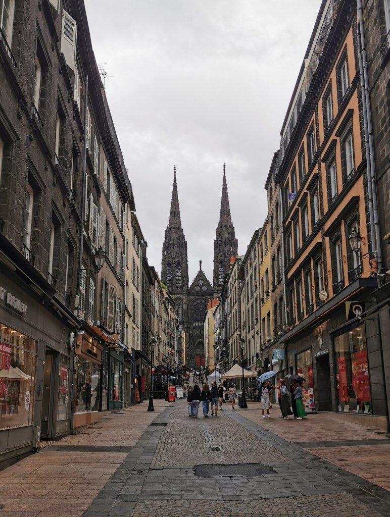 Clermont Ferrand has been primarily an industrial and commercial city rather than a tourist destination. However, we decided to have an overnight stop there before travelling on to Paris and Lille the following day. We caught a tram into town – an unusual tramway where the vehicles appear to run on only one rail – for more detail see Rail and Tram Buffery 2. As usual we had a wander round the city centre, stopping for a beer or two along the way. We climbed uphill to the oldest part of the city, which stands on a hill and surrounds the cathedral.