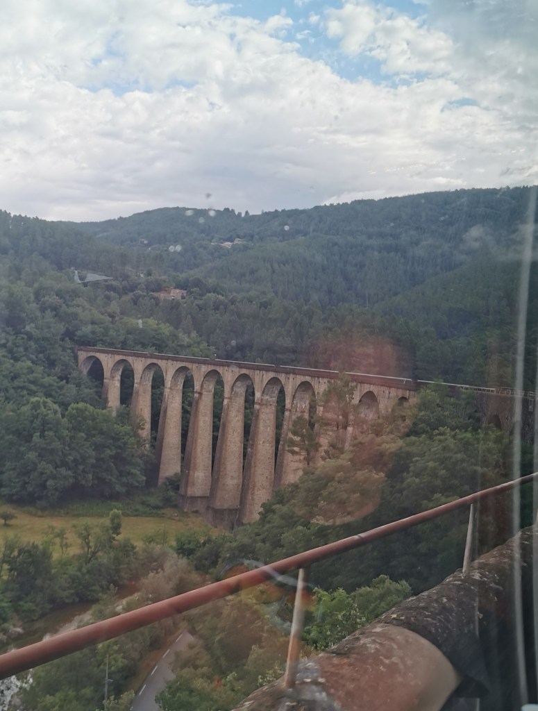 The high-speed TGV train from Nimes to Paris takes 3 hours. We decided to take the scenic route, the Cevennes railway (pictured), which takes 5 hours to Clermont Ferrand (followed by a further 3.5 hours to Paris the next day). The line is one of the most spectacular in France, cutting through the Massif Central. The first section to Alès is unremarkable, then it begins to climb, crossing spectacular viaducts, between isolated towns and villages, until it reaches 1018m above sea level.