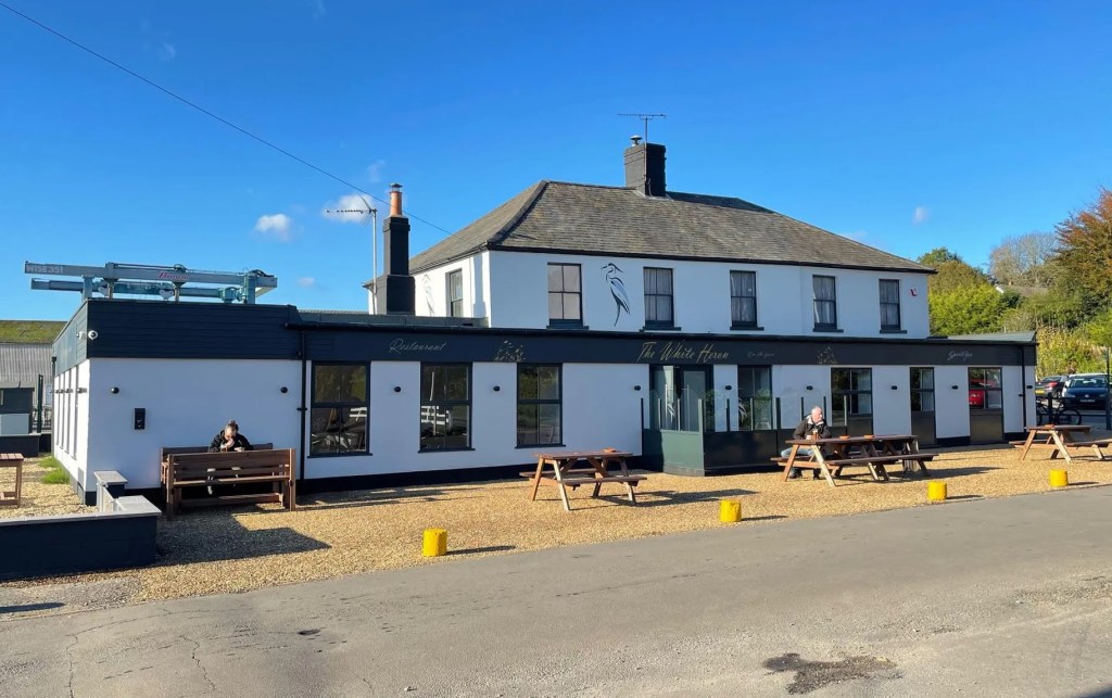 By Brundall station is the White Heron (pictured), where we stopped for an early pint – it is mainly an eating place but has several cask ales and opens at 1000. It is situated next to a large boatyard on the River Year and you can watch all the activity from the pub.