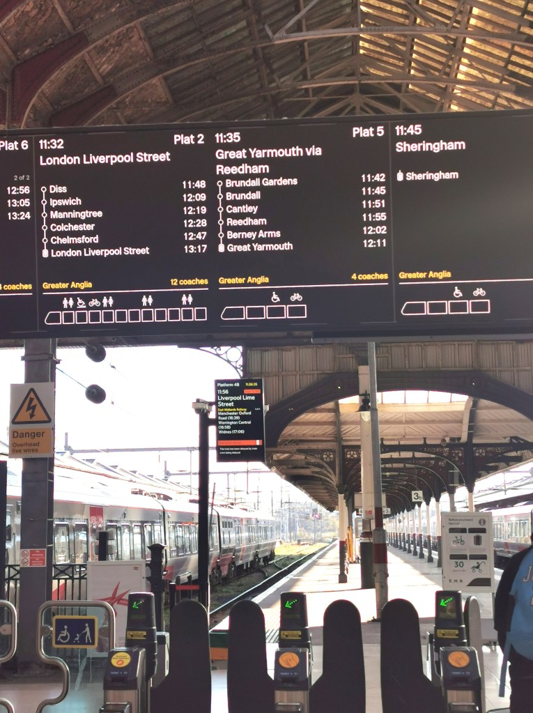 As in 2021 we began the trip in Peterborough, travelled to Ely and spent the first night there. See East Anglia 2021 for the 2021 trip. This time we stayed in the same hotel and visited most of the same pubs. On the following morning we journeyed by train to Norwich and it is from there that we were in new territory. Rather than repeat ourselves we’ve made a few updates to the 2021 account, and this account of our 2025 journey begins on our second day with the train from Norwich to Great Yarmouth.