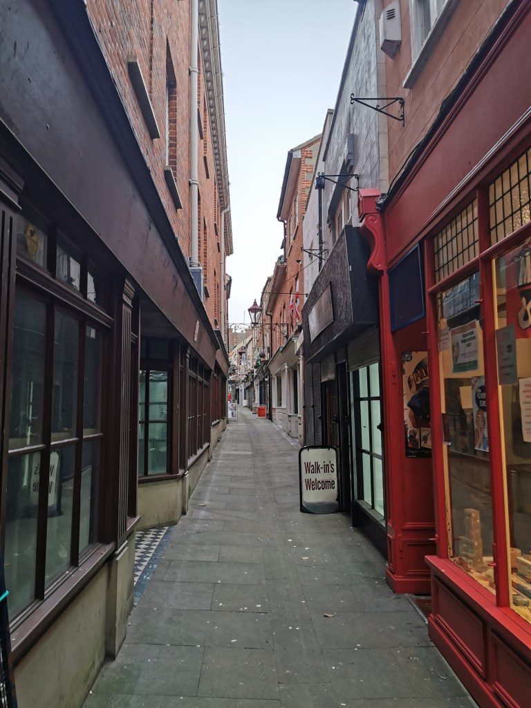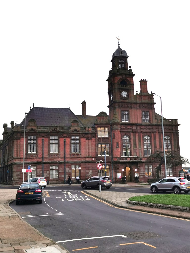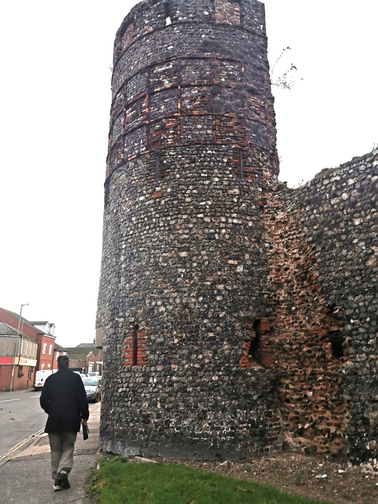 Today Great Yarmouth is a town of about 30,000 people on a spit of land between the River Yare and the North Sea. It was mainly a fishing port and a seaside resort. Looking at photographs the seaside area and beach look impressive, but we didn’t visit it on a cloudy November day. Fishing and other traditional industries have declined and the main part of the town appears very depressed and in need of investment. There are older buildings including the remains of the Town Wall, the Minster and an impressive Town Hall. There remains some old areas of housing and shops in the many back lanes, known as rows. However, the town was badly bombed during World War 2 and much of the old town was replaced by 1950s housing estates.