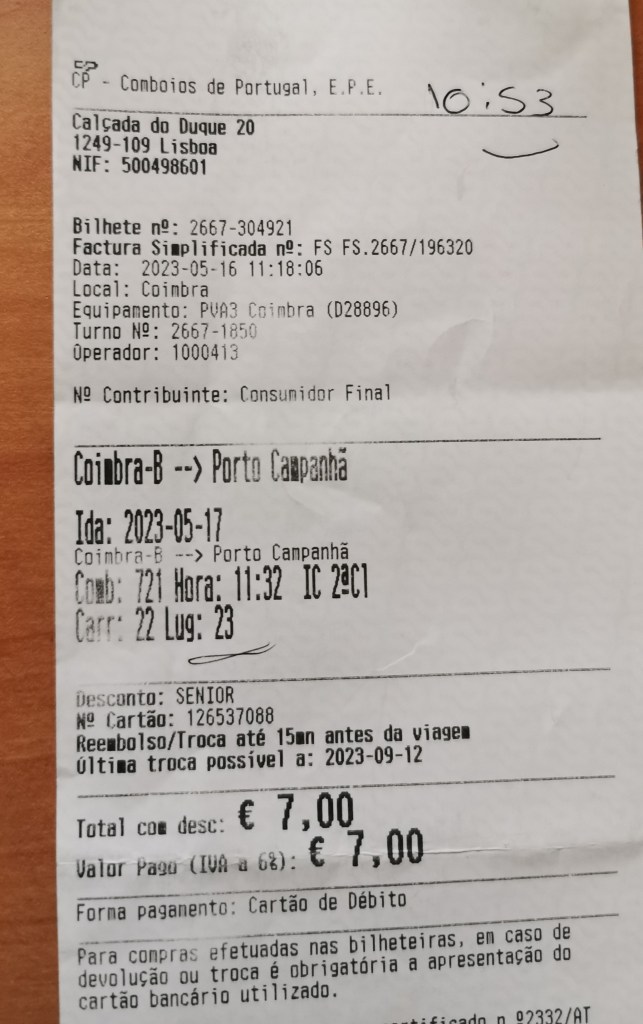 Normal fares are cheap and there are half price fares are available for pensioners, which meant that the journey from Coimbra to Porto cost us all of €7 each. The website said these tickets are available for people with EU passports (we assumed another Brexit problem), however the booking clerk at Coimbra gave us the reduced fare on production of our UK passport.