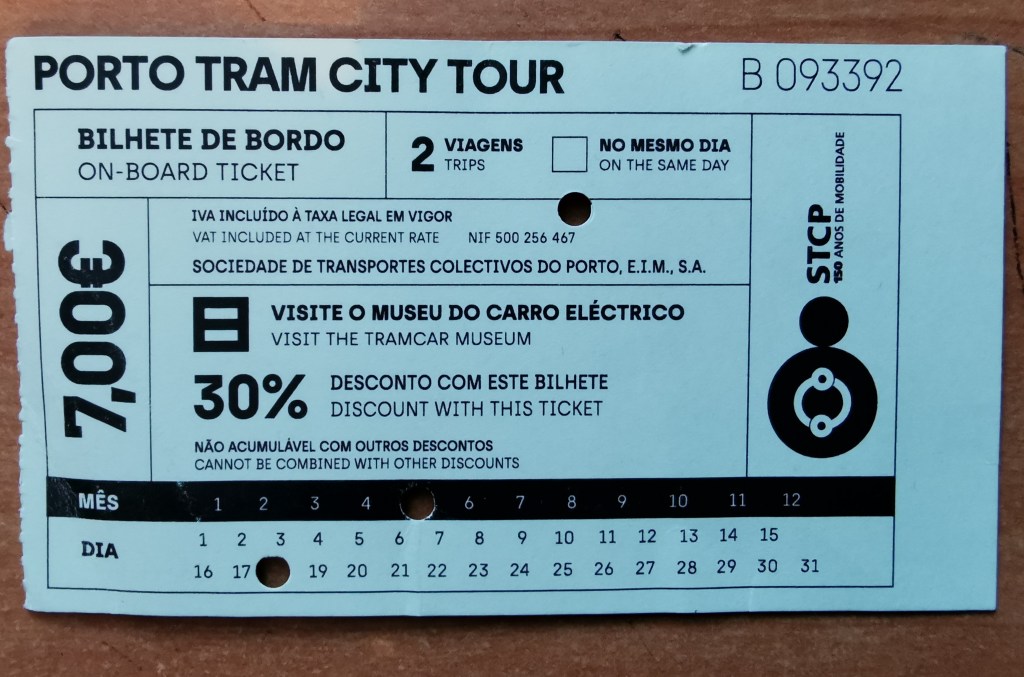 Souvenirs of Porto trams – Steve’s ticket and a model tram (which I think may be made in China and is a replica Lisbon tram with Porto on the side).