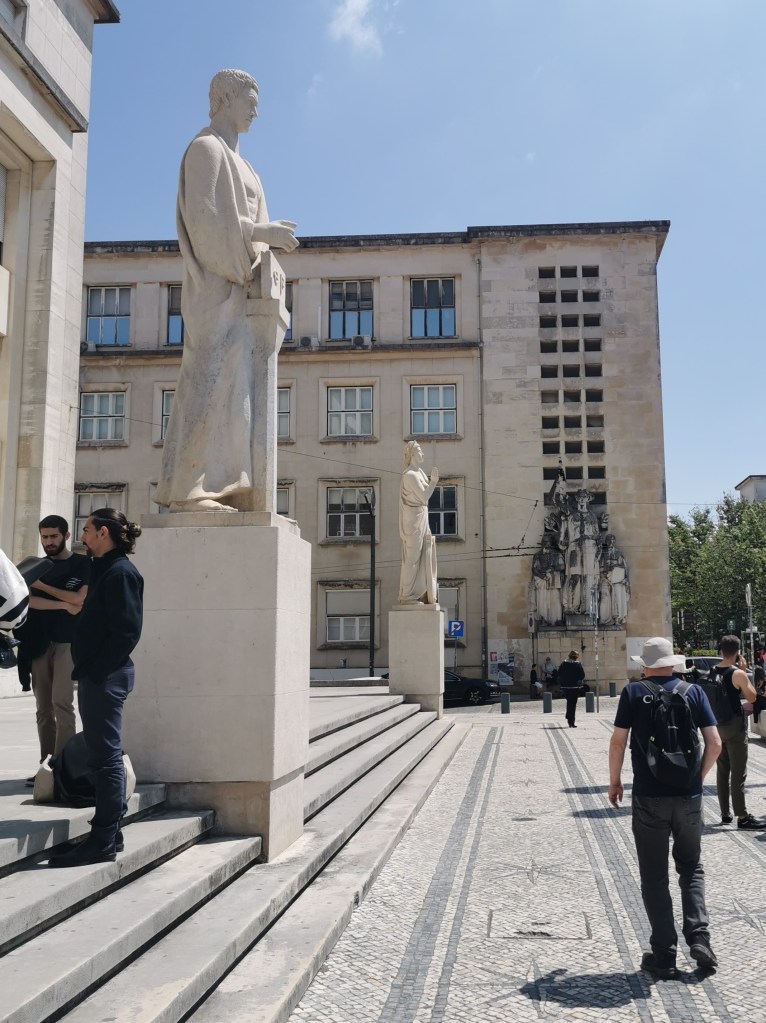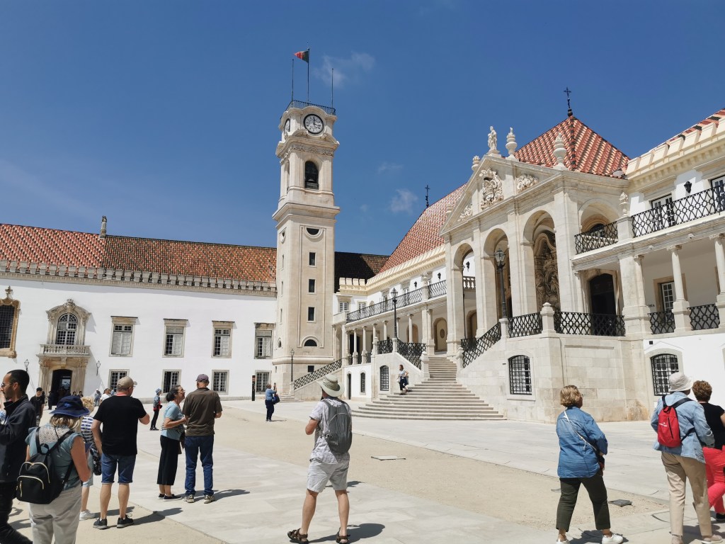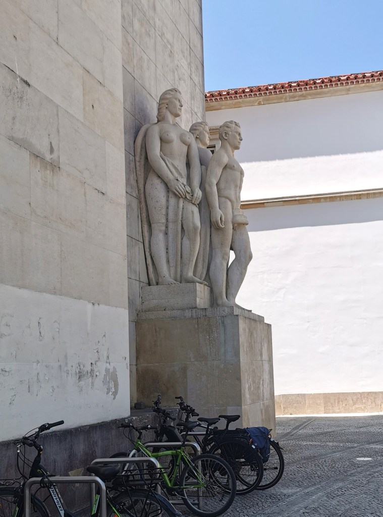 The oldest original buildings (pictured) – the old university and the library – date from the sixteenth century and were busy with tourist groups. Several buildings date from the years of the Portuguese dictatorship in the last century and look the part with typical fascist/communist overbearing exteriors and statues. The hilltop site is completed by the New Cathedral and some modern faculty blocks. Unsurprisingly, the site provides a series of viewpoints and vistas over the city and surrounding area (pictured).