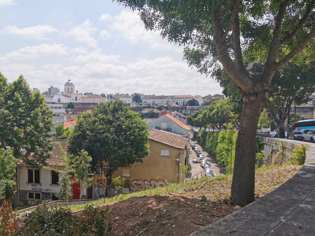 We decided the best way to explore the city was to head for the top and work our way downhill. We walked the length of the streets separating Baixa and Alta and headed for the easy way up, the Elevador do Mercado. The ticket machine was out of order and it took a good half hour waiting in the queue at the municipal transport office next door – there was a line of people sorting out their pensioners passes which involved photographs and proofs of ID and residence. However, we eventually were able to hand over our €1.70 each and head for the top – the journey provides good views over part of the city.