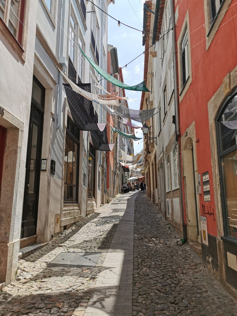 The café-bars in that square specialise in fado music –we’re told it is different in Coimbra from elsewhere. Later, we discovered Praça do Comércio in Baixa, close to but hidden from the main street. In the square is Coola Boola a combination bar, bottle shop, tattooist, vintage clothes and vinyl store. It describes itself as ‘a way of modern lifestyling surrounded by the glamour of vintage and retro design’. That makes it sound horrendous but it’s friendly, the bar has 5 different craft beers from local brewery Praxis and the terrace outside is ideal for people watching. More people watching took place from terraces in Largo da Portagem (Café Montanha was good) and Rua Ferreira Borges.