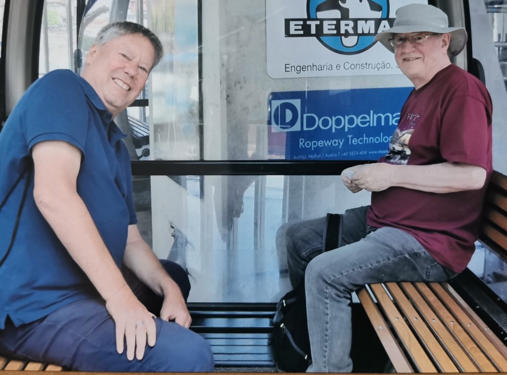 Photographs. All of the photographs are by Steve Gillon except for the following. The photograph of Elvas is from Portugal Travel Guide. The Comboios de Portugal logo and the Porto Metro in an underground station are from Wikipedia. The Coimbra trolleybus is from Wikimedia Commons. The two photos of the Elevador do Mercado are from SMTUC (vertical lift) and raphanomundo (inclined lift). These were sourced from Google Images. The photo of Steve and Ken on the Teleferico de Gaia is by the staff photographer. The base map for Steve’s photo of our journey is from the Rail Map Europe, 3rd Edition and the timetabler excerpt is from the European Rail timetable, summer 2023 edition, both by Europrean Rail Timetable Limited and available from http://www.europeanrailtimetable.eu . The Porto port boats photo is from a postcard by http://www.grupogala.pt . The photos of Santo Idelfonso church and the three trams at Foz de Douro (and possibly a couple of others) are Ken Donald.