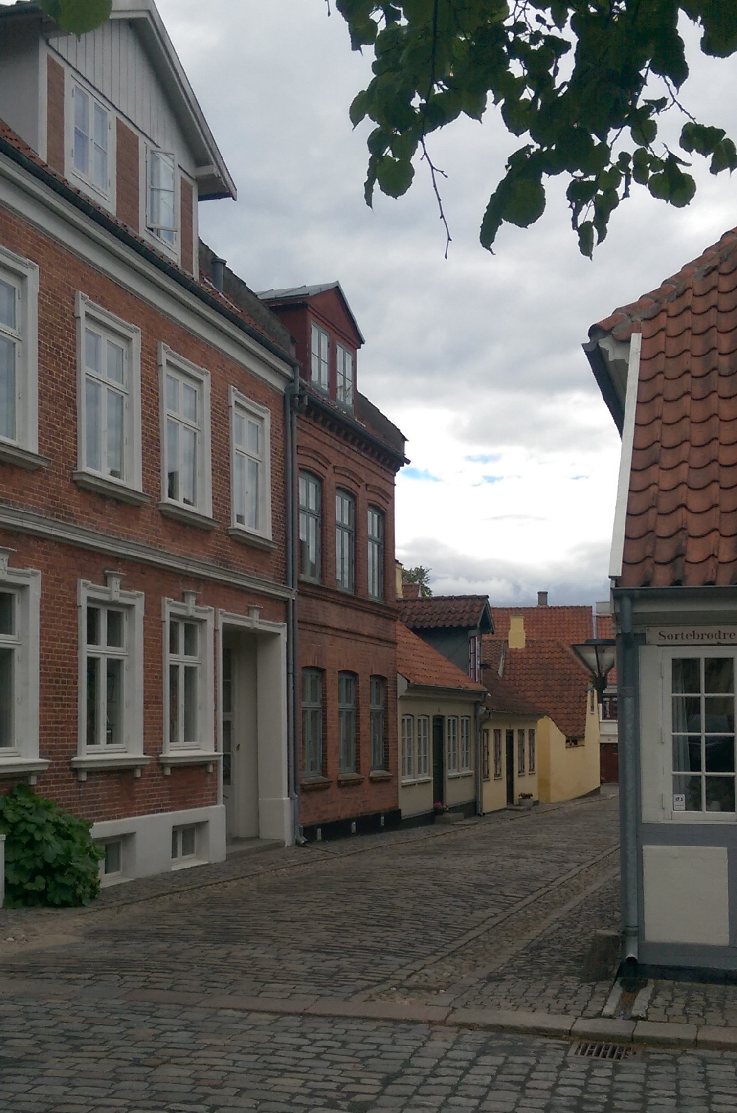 In Danish terms North Jutland is the end of the earth, but it doesn’t feel that remote. It’s an interesting journey through pleasant countryside, then across the lifting bridge over the Limfjord. Technically the top bit of Jutland is an island, but nobody seems to treat it as anything else but another bit of the peninsula. Through Aalborg and onwards to Aarhus, and we’ve managed to repel boarders and keep my window seat. At Aarhus we reverse and add another 6 coaches, and there is less overcrowding. At Skanderborg a large group of young people dressed as though they’ve had a weekend mountaineering board the train, but there is hardly a hill in sight. We reach the sea at Vejle and after Frediricia cross the Lillebælt (Little Belt) onto the island of Fyn (Funen). I didn’t notice this – I thought it was only a river. There is some major engineering work going on between Fredericia and Odense and the timetables are adjusted to allow an extra half hour, which we spend waiting for other trains to pass and watching workers not working. And after six hours from Hirsthals we arrive in Odense (pictured).