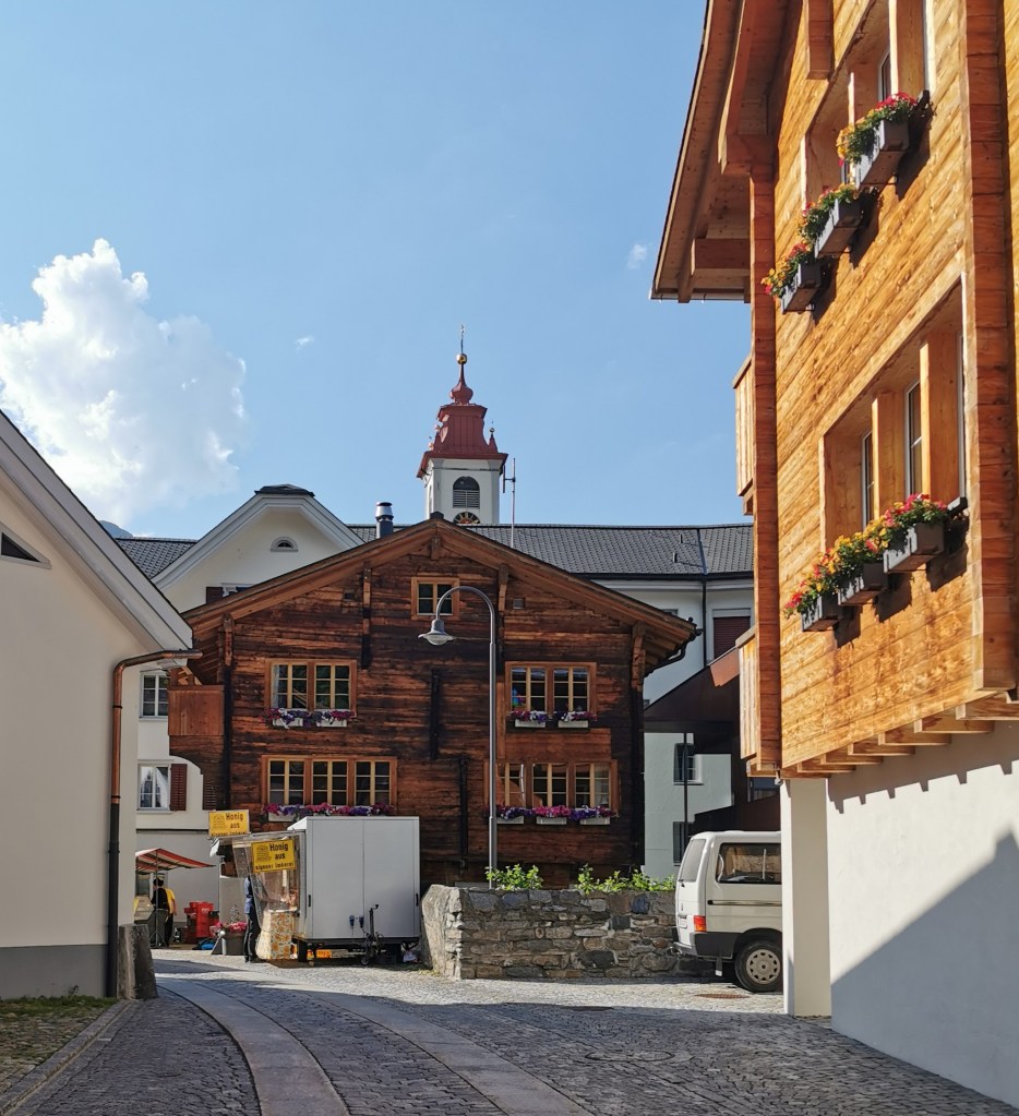 I’ve passed through often, but never stopped in Andermatt before. The small town was in a key location at the foot of the St. Gotthard Pass, guarding the north-south route through the Alps, now bypassed by road and rail tunnels. It is at the crossroads with the east-west route from Chur to Brig via the Oberalp and Furka passes. It was a major garrison town (and remains a military training base) and is now being developed into a resort.