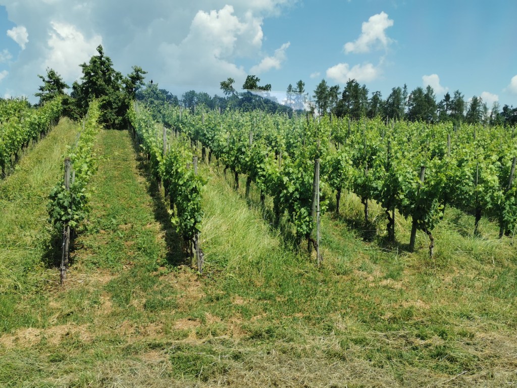 Vines growing near Pfaffikon and the castle at Rapperswil, from the train