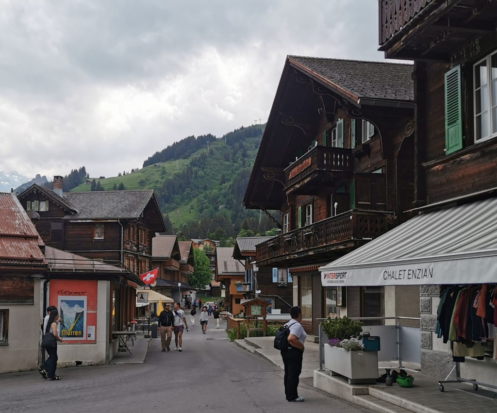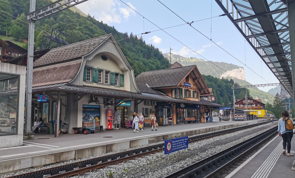 Grindelwald Terminal is a new station (and shopping centre) outside the village, where we caught the train to Zweilütschinen, then changed for Lauterbrunnen – the railway line had reopened. We sought out the only pub in town, the Horner Bar at the other end of the village. It was friendly, the beer was good, so we stayed there longer than planned before heading back to Mürren, where we had a final beer on our hotel terrace, finished just in time to avoid another shower.