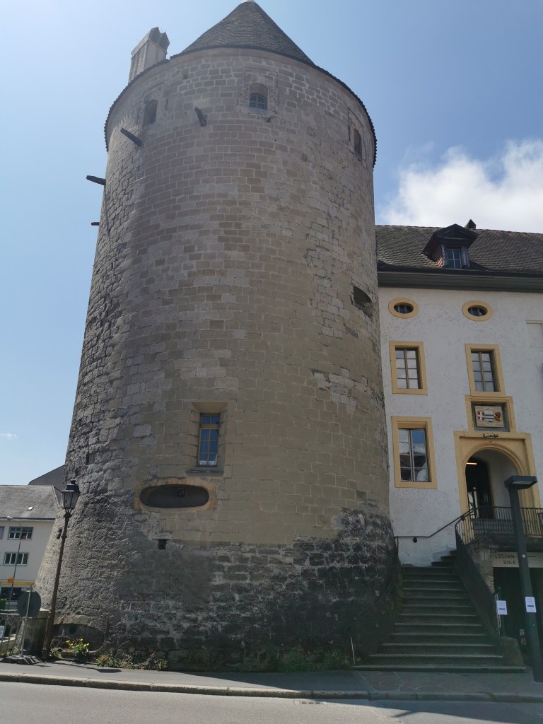 We knew nothing about Yverdon and it turned out to be a pleasant small spa town. Down a street off one corner of the station square and you are in the centre of the old town. There’s a turreted castle, a market square and, more importantly, several café-bars.
