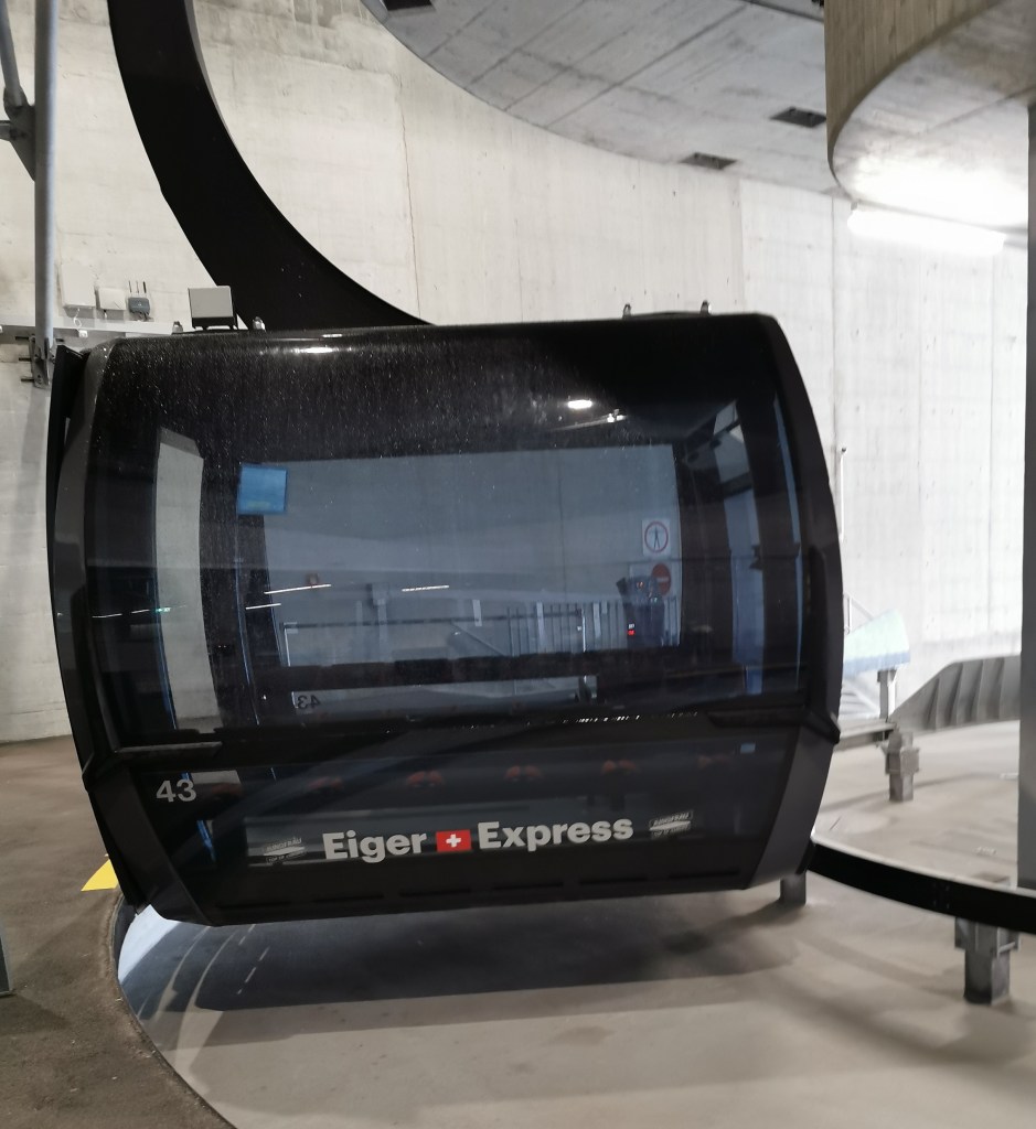 (4) The Eiger Express cable car opened in December 2020. The route is 6483m long and takes 15 minutes, reducing the time for those in a hurry (why would you be?) to reach Jungfraujoch by 47 minutes. There are 44 gondolas, each carrying 26 people and it cost CHF470million to build. As part of the project Grindelwald Terminal station opened in December 2019.