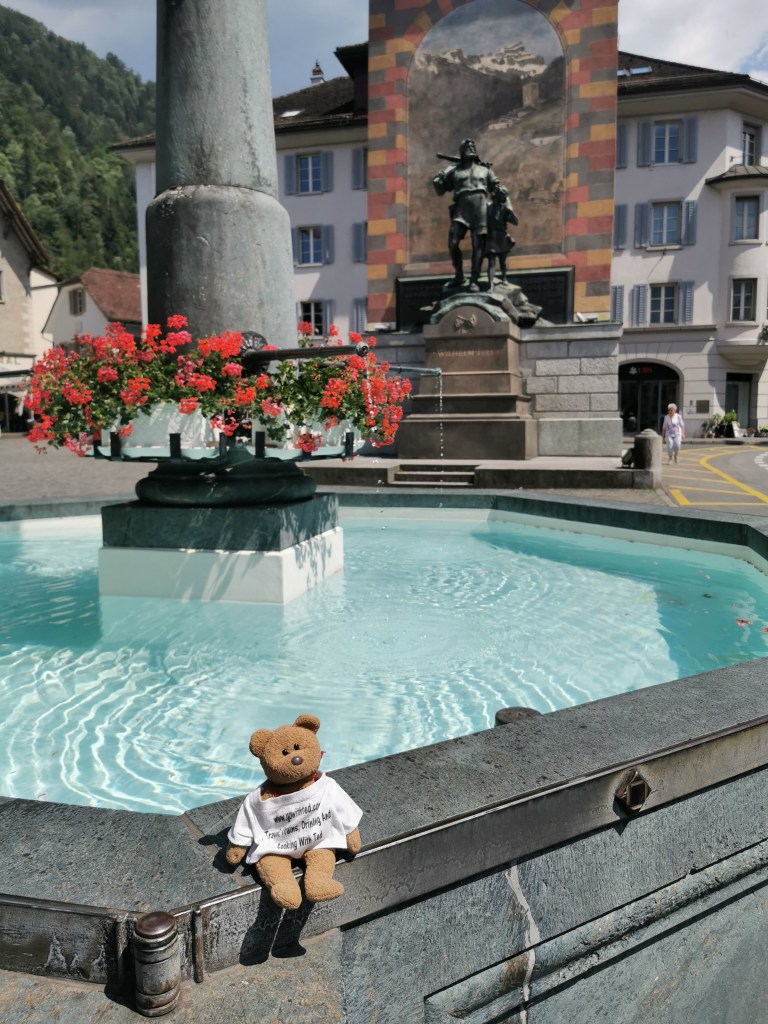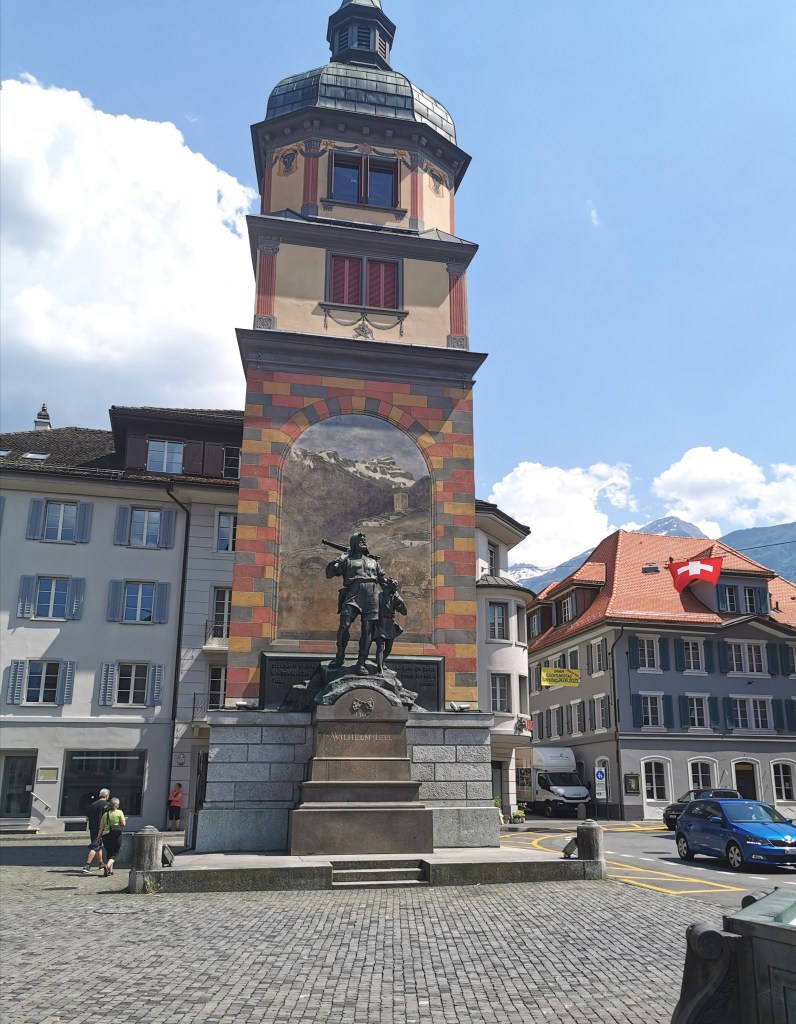 Time for our journey through the new Gotthard Base Tunnel – I admit to being nerdish enough to want to do it. It opened in 2016 and, at 57km, it is the longest rail tunnel in the world (note 7). It avoids the steep climbs to and from the old tunnel, which benefits both passenger and freight trains. Needless to say there’s not a lot to see. The route by-passes the town of Biasca as it enters the tunnel and emerges by Erstfeld, some 25km north of Göschenen. We were heading for Altdorf, but the first stop for the express trains through the tunnel is Arth-Goldau, from where we doubled back to Altdorf on a local train. Trains take 54 minutes from Bellinzona to Arth-Goldau via the new tunnel, or 2 hours 8 minutes via the old route, albeit with several stops.