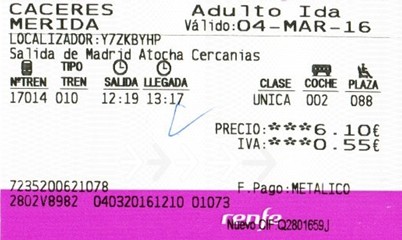 From now on we returned to train travel. It was shortly after noon on a Friday and, in the bus and train stations, it was clear that students were starting to move on their weekend trips home. However, the train from Caceres to Mérida was not too busy – the journey took one hour on a three coach Madrid-Badajoz regional train which has already taken over 4 hours from Madrid. If and when the new Extremadura high speed line is completed it will make a huge difference (See Railway Buffery 4).