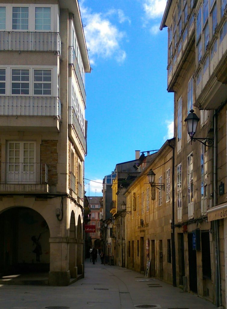 The city sits on top of a steep hill above the Rio Miño and its tributaries. To reach the bus station we gain height by going round the streets of Lugo in what seems like circles. In common with many places the bus station is a particularly grotty introduction to the town. When I get my bearings it seems we are in the Praza de Constitución just outside the city walls. It is possible to walk the complete circuit along the top of the Roman walls – more than 2km – and they are impressive. There is a main road encircling them (which makes photography without being run over difficult, but at least it means the centre of town is largely traffic free) and we walked round them to gain an idea of the layout of Lugo. Within the walls the old town is a mixture of medieval and eighteenth century buildings, some well looked after, others in serious disrepair. There’s some regeneration going on close tothe walls but still a significant number of derelict buildings. To reach my hotel we walked to the Praza Maior via the Rúa Nova and the cathedral. Rua Nova has plenty of restaurants and bars so there was time for a quick beer.