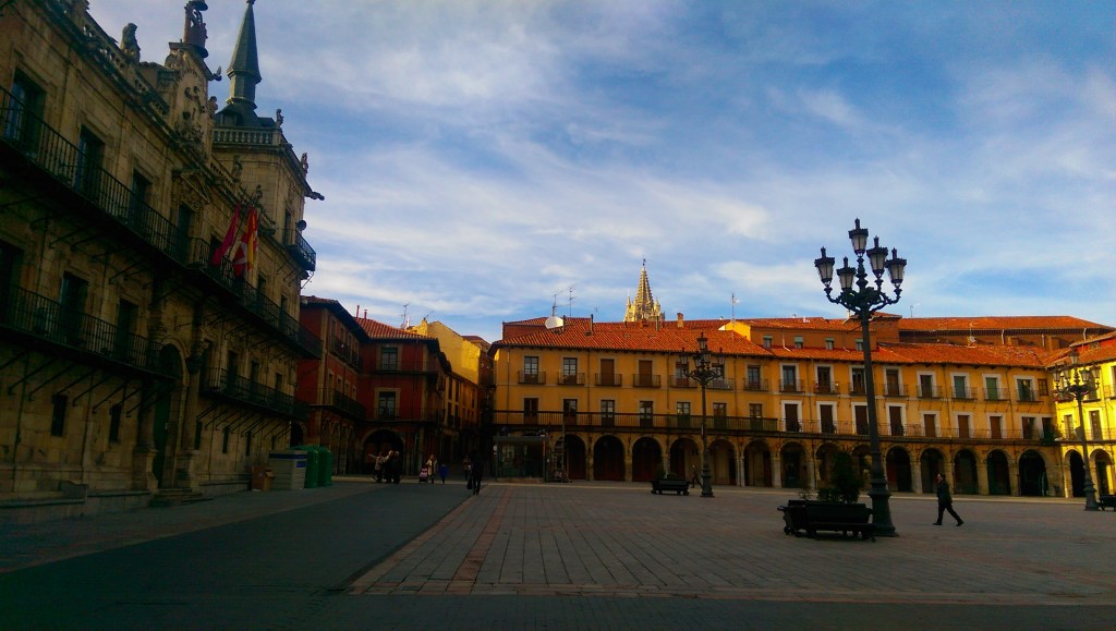 I have my usual walk around the area, having a cursory look at the main sights and taking some photos to prove that I’ve been in León. The Plaza Santa Maria de Camino is a lovely cobbled old square, with shady trees and an ancient small church. The back streets and the market area are quiet but atmospheric, there are plenty of shops which are permanently closed and a few abandoned buildings, but it looks as though it still has some life. By the time I reach Calle Ancha once more it is bustling with shoppers, and I wander on to have a quick look at the Basilica de San Isidro and the cathedral. I feel a bit guilty at not making the time to look inside the cathedral (the stained glass windows are meant to be particularly impressive) but I’ve always preferred just walking around to get the feel of a place. And there are many occasions when the choice is between the inside of a church and the inside of a beer glass, and the beer wins.