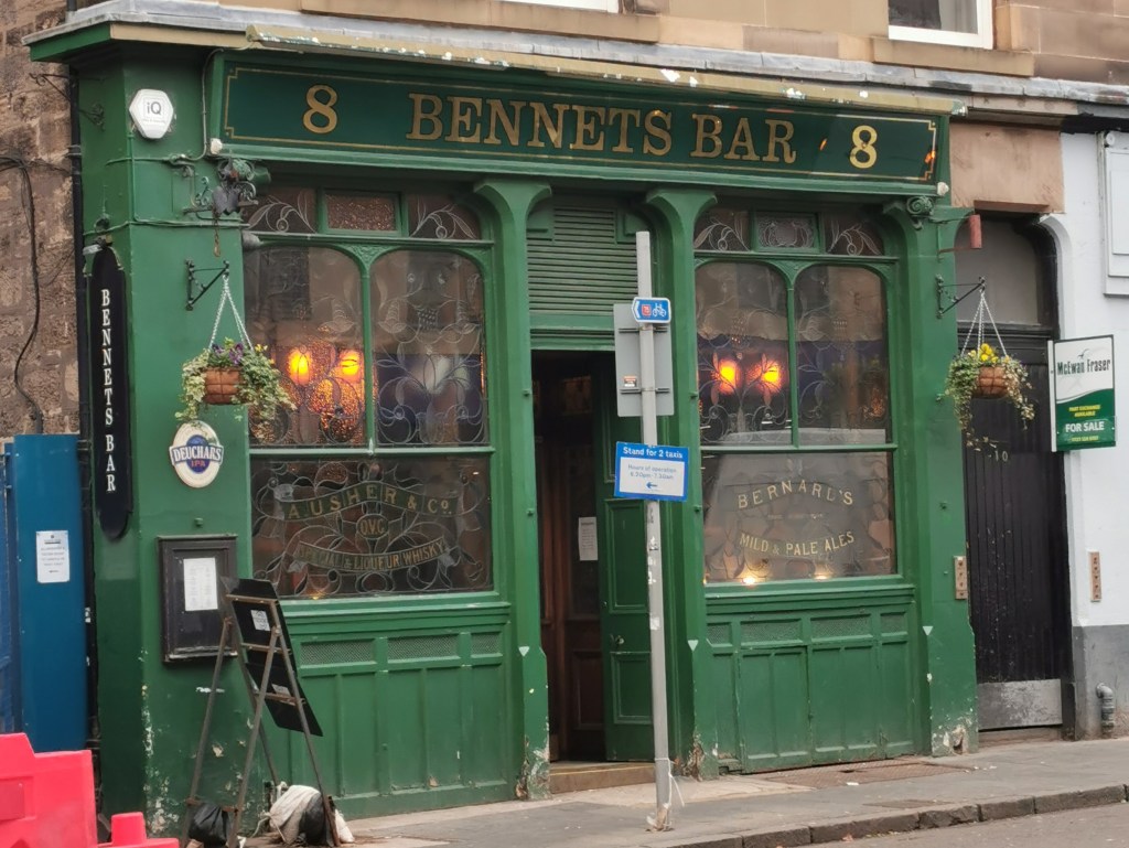 | Sandy Bells 25 Forrest Rd, EH1 2QH | Famous mainly for its folk music sessions. During the daytime it’s a quiet and friendly pub near Edinburgh University and the National Museum of Scotland. Visited 2023. | Buses: 9, 23, 27 |