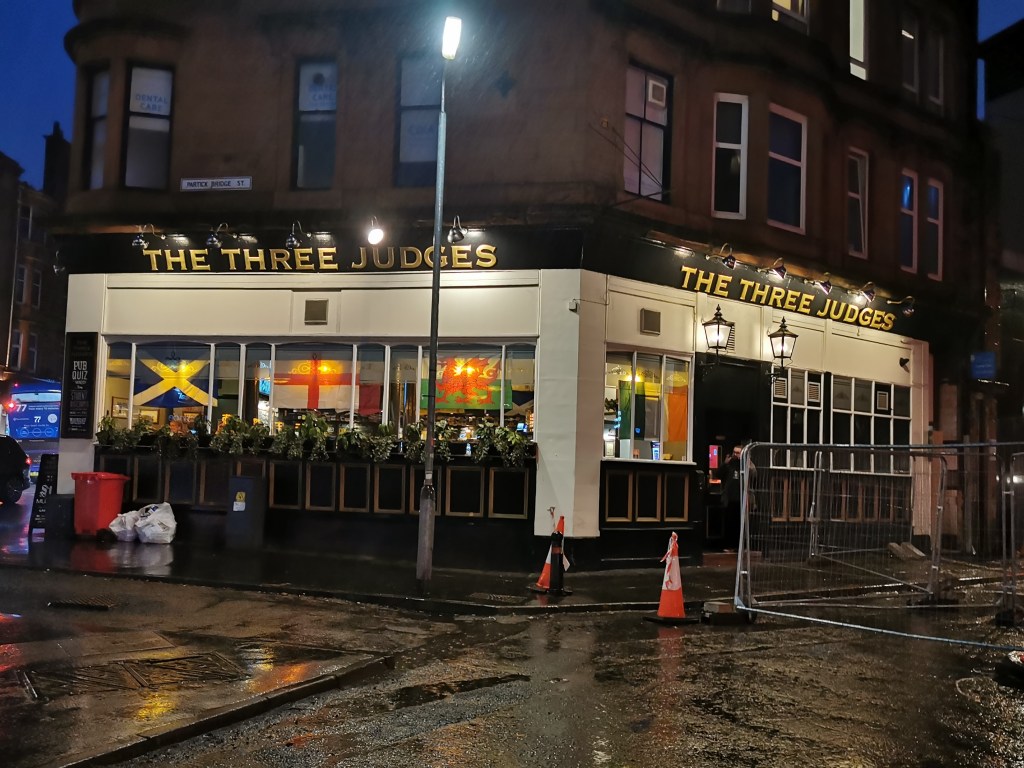 | Three Judges 141 Dumbarton Rd, Partick, G11 6PR | Real ale mecca at Partick Cross. Ever changing selection of beers, well kept. Visited 2024. GBG. | Buses: 2,3,77 Subway: Kelvinhall |