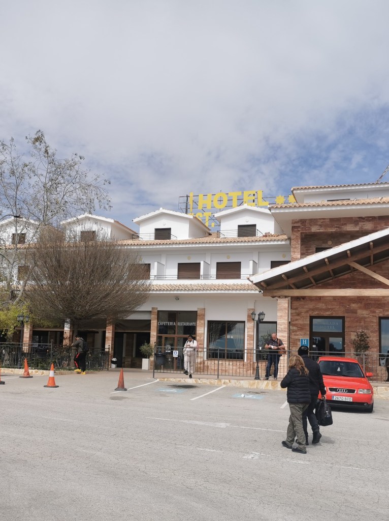 The journey itself was fine. After a short stop at Granada we travelled through an unpopulated landscape, looking at the snow on the distant Sierra Nevada and Sierra de Segura mountains. We passed close to Guadix and we could see some of the cave dwellings which the area is known for. There was time for a beer at a refreshment stop at the roadside Hotel Casa Lorenzo, one of a series of rest areas in the middle of nowhere (pictured above). By Lorca the countryside becomes more built up with a series of small towns and, in between them, detached houses in their own market gardens. Finally, we arrived in Murcia on time.