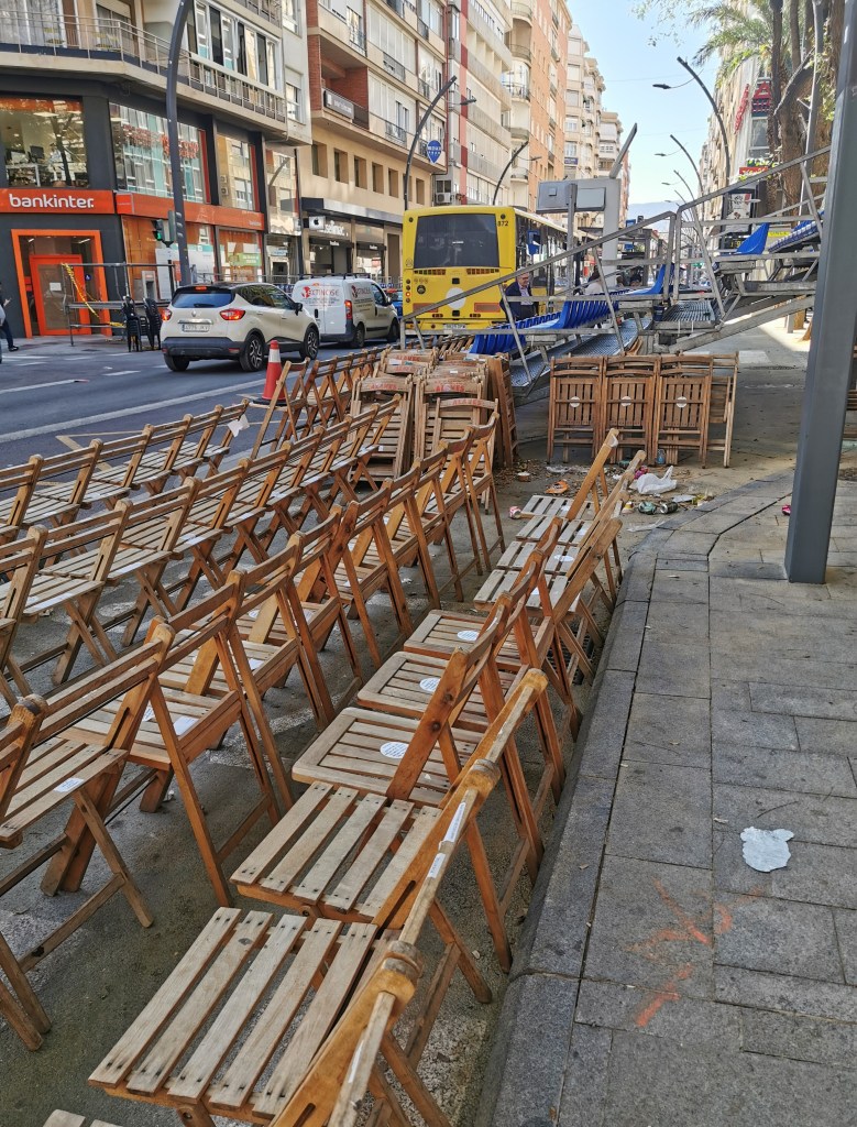 We sought out the Teatro de Romea (for some reason we had it in our heads that it may be a Roman ruin – doh!). We then walked down the main street with its banks of seating for the parades until we were back in the historic centre and the area around the impressive cathedral. We walked as far as the banks of the River Segura. The river was busy – being used for boating and the banks for pop-up restaurants for the fiesta.