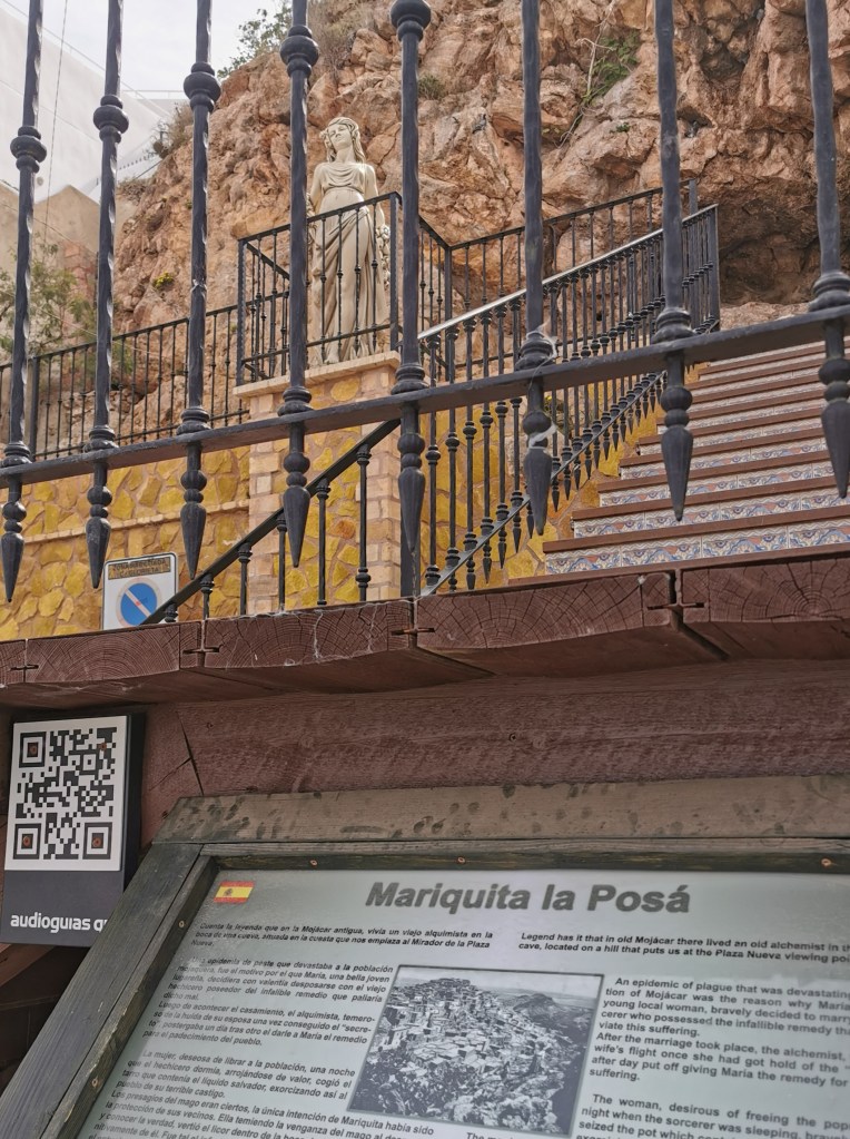 Prominent was the broad course of the Rio de Aguas, though the one thing it didn’t contain was water. This is an arid region of Spain, exacerbated by the current drought. Near the bus stop we spotted a statue of Mariquita la Posá (Mariquita the poser?) – I always thought that mariquita was a rude word but it turns out that she wasa local woman who cured the villagers of the plague when her sorcerer husband refused – there’s more detail online. in the village. We then had a wander round the village streets taking in the ambience.