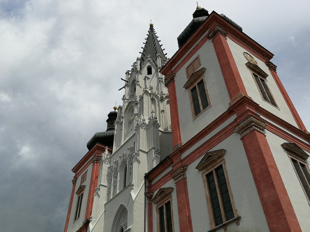 The ascent is steep and the summit station is 519m high, over 250m above the Hauptplatz. It is not just a tourist or excursion route – there are plenty of locals on board heading for the posh suburbs and a small university campus (the Bruckneruniversitat, a private university for music, drama and dance) on the hillside. The day is sunny and warm (and it remains so for the rest of the trip, reaching 30⁰C). At the summit, there is the usual viewing platform, café and souvenir stall, a pilgrimage basilica, some old fortifications and the Grottenbahn (cave railway) Dragon Express for children built inside the ruins, plus walks around the hill and into the surrounding countryside.