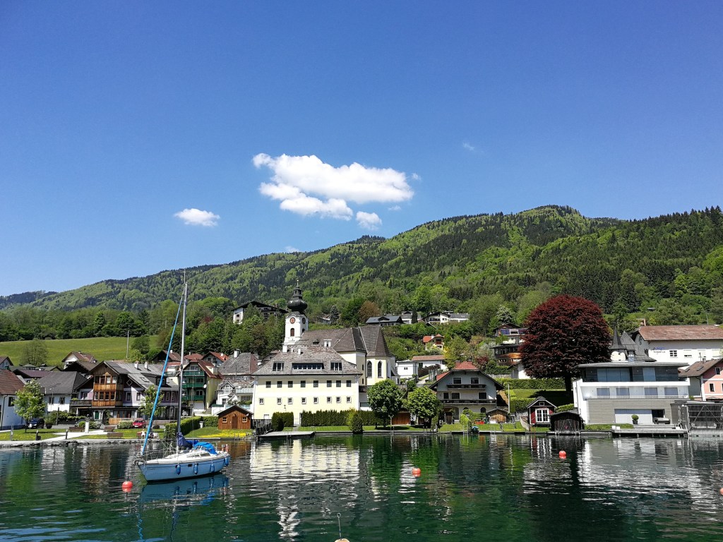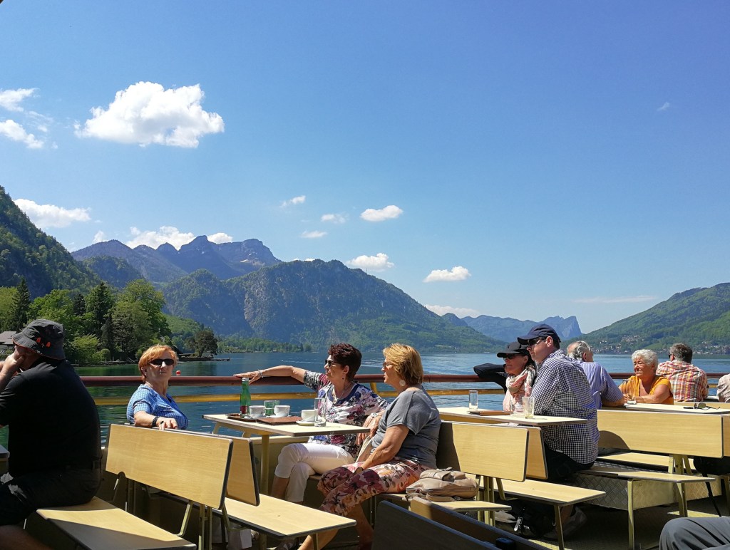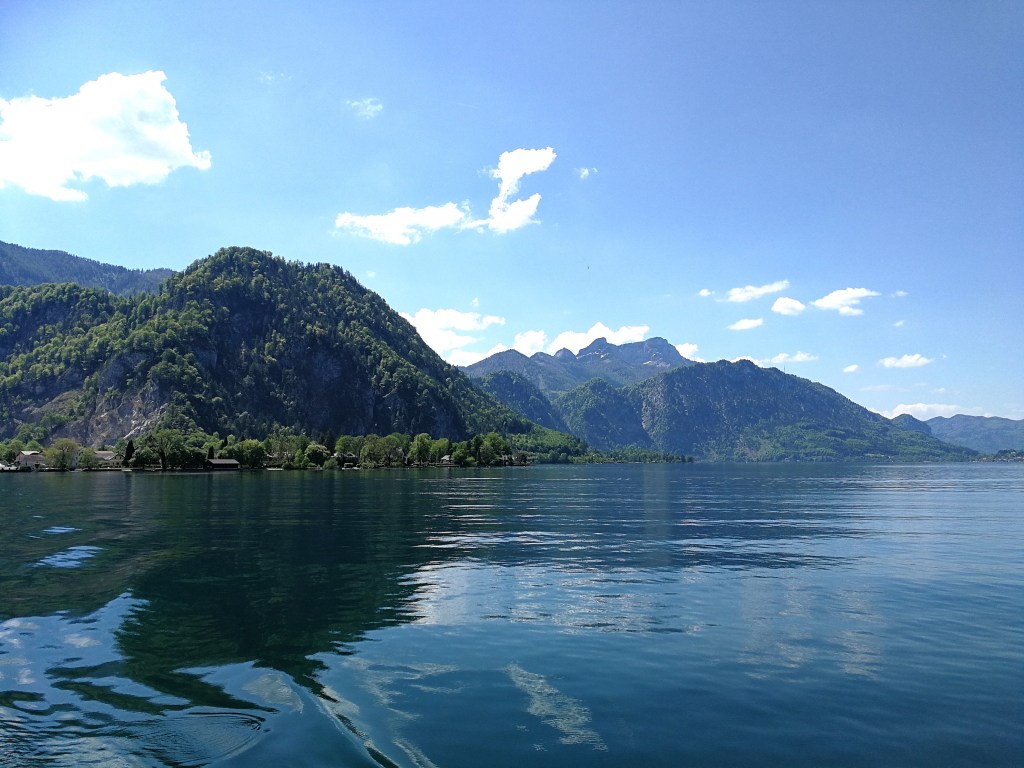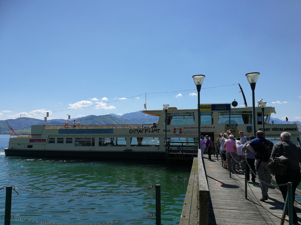 Attersee is the largest lake in the Salzkammergut – about 20km long by 4km wide. The eponymous village is technically called Attersee am Attersee, but nobody bothers with the full name. At this time of year there are two daily boat trips calling at the piers round the south, mountainous, end of the lake and we join the lunchtime cruise. A coach party turns up and, once they board, I am 20 years younger than anyone else on the boat. The weather is tremendous and we get sunburned while sipping a beer and watching the scenery. The lake is so still you can see the wake for miles. Every house by the lake seems to have a boathouse.