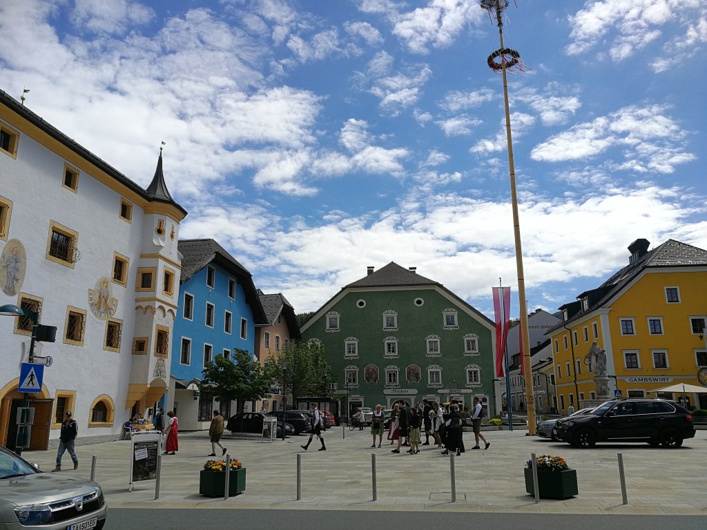 At Vöcklamarkt we walk into town and find a gasthaus with a beergarden and one other customer, and we manage a chat before it’s back to Gmunden. It is Thursday night and the town is definitely busier as people arrive for a long weekend. A large Italian market is setting up in the square. We spend our final night in Gmunden, once more sitting in the cafes by the lake and taking in the view from the balcony, eating salads from the supermarket (see…it’s not all bratwurst and currywurst).