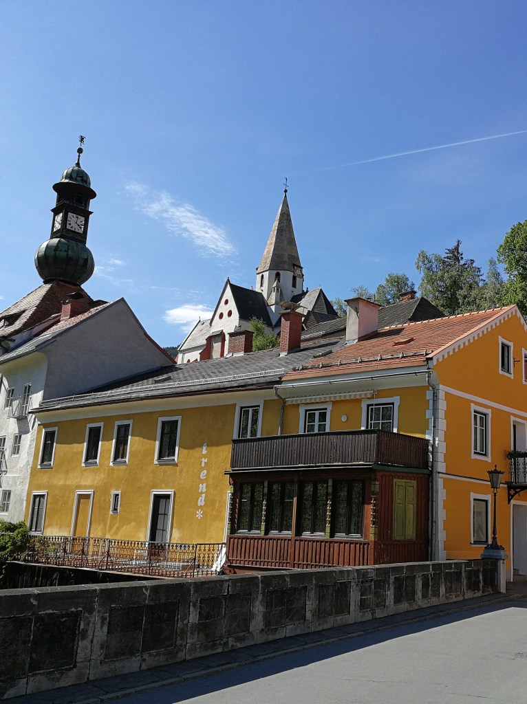 The weather is glorious once more and we walk back down the valley, following a path which I have seen the from the train. It is perfect, walking alone with only a bear and the sound of the fast-running river. We reach Ramingstein, three stops down the line, before it is time for a beer and the next train along the valley to the local centre of Murau.