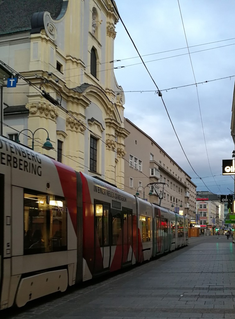 The first tram line in Linz opened in 1880. By 1995 the system was 15.3km long. With recent suburban extensions and the incorporation of the Pöstlingerbahn the system length has grown to 33km. The track gauge is an unusual 900mm – the only other city with this gauge is Lisbon. In 2004 the tram tunnel under the Hauptbahnhof opened providing easy transfer between train and tram. There are four main routes all of which share the city centre track between the Hauptbahnhof, Landstrasse (the main shopping street), the Hauptplatz and the suburb Urfahr on the north side of the Danube bridge. The fifth line is the Pöstlingerbergbahn. This opened in 1898 and has steep gradients of over 10%, without any rack system. It was constructed as a separate metre gauge line between Urfahr and the summit. However, in 2009 the line was regauged to 900m and a through service now runs from the Hauptplatz.
