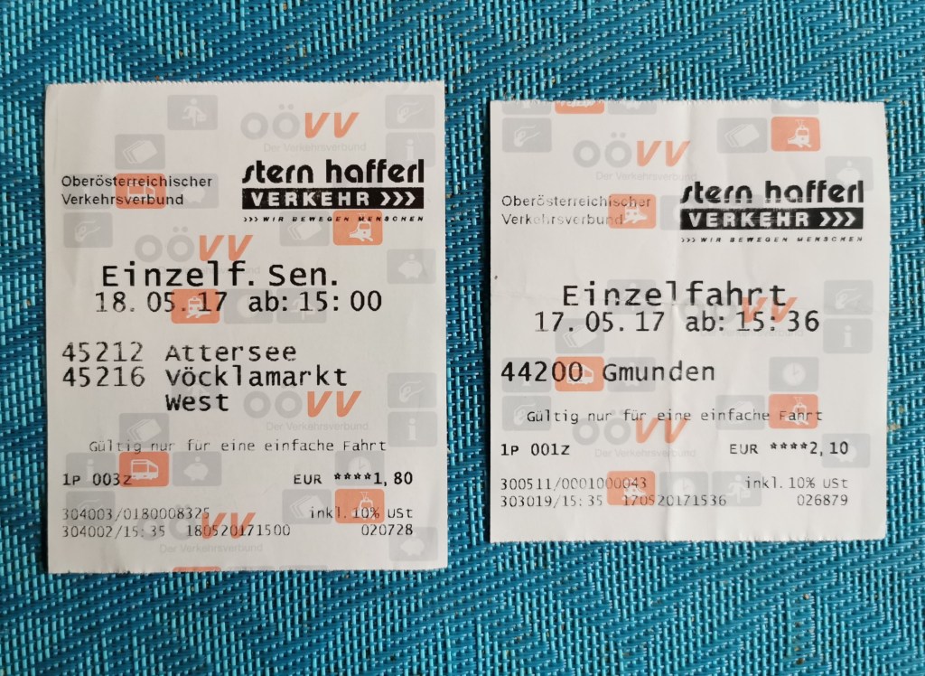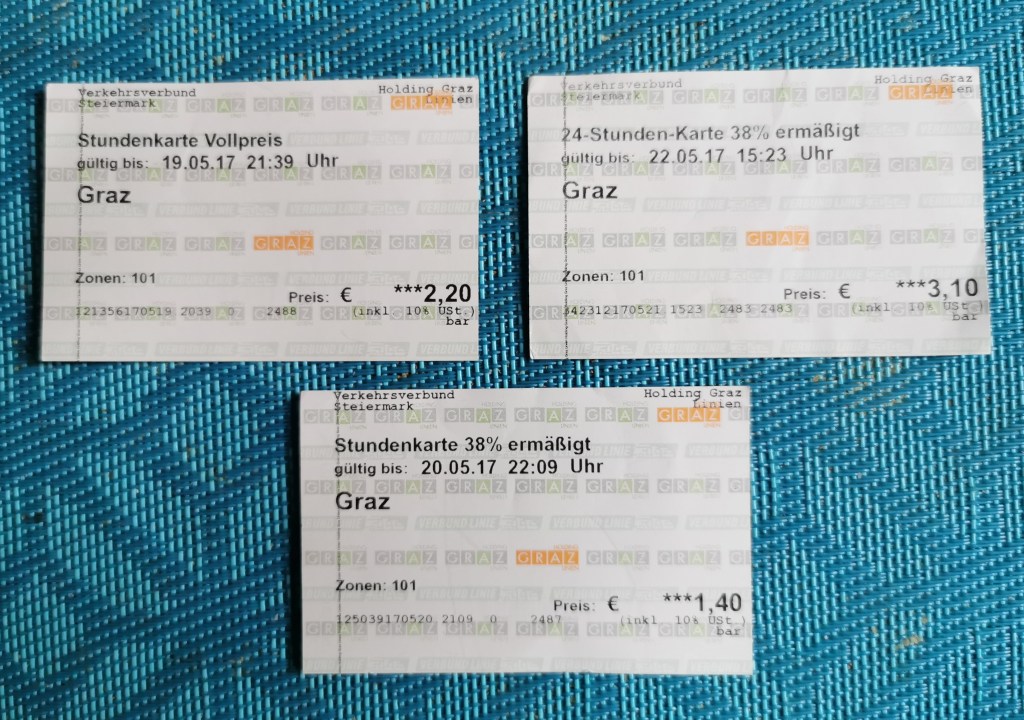 Each state has its verkehrsverbund to coordinate public transport, including ÖBB and private railways, bus and tram services. They operate a zonal fares system covering all modes of transport (except purely tourist / heritage services). Single fares can be expensive (but see below). Return fares are twice the price of a single, but function as day tickets within the zones travelled. These tickets include breaks of journey and onward journeys by bus and tram. The verkehrsverbund website for Oberösterreich is www.ooevv.at and for Steiermark is www.verbundlinie.at .