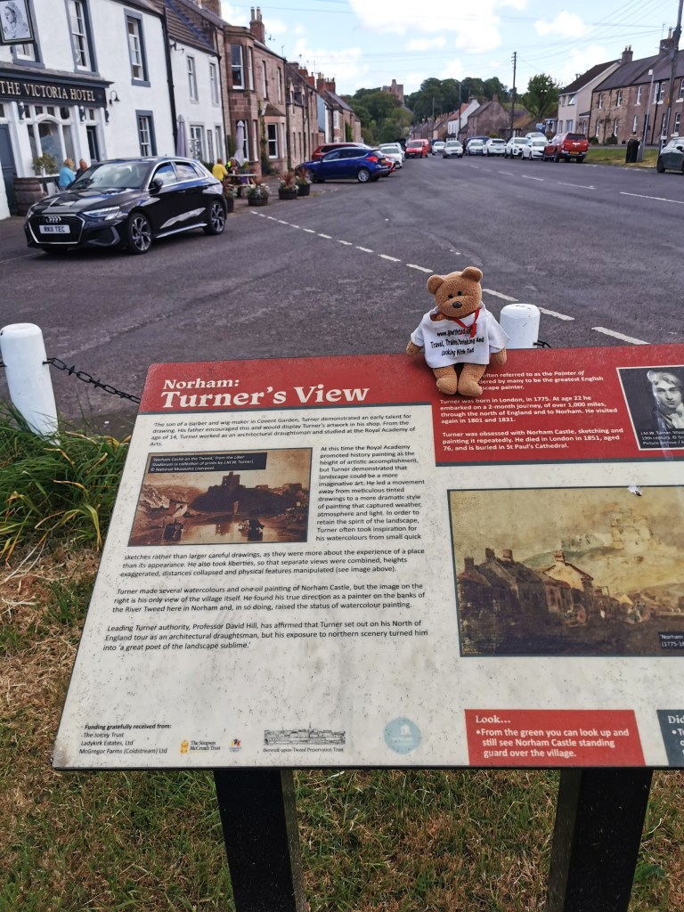 On our return bus journey to Berwick the following day we broke the journey in Norham, on the English side of the Tweed. It is a pretty village with a castle nearby – the view of which from the village was painted by Turner. (pictured). We walked a little way out of the village, across a field and down by the river. The peace and quiet reminded me of the days when we regularly went walking in the countryside. There are two pubs – the Victoria Hotel was busy and very food based but the beer was fine, while the Masons Arms had lunchtime regulars, some good banter and a choice of two real ales.