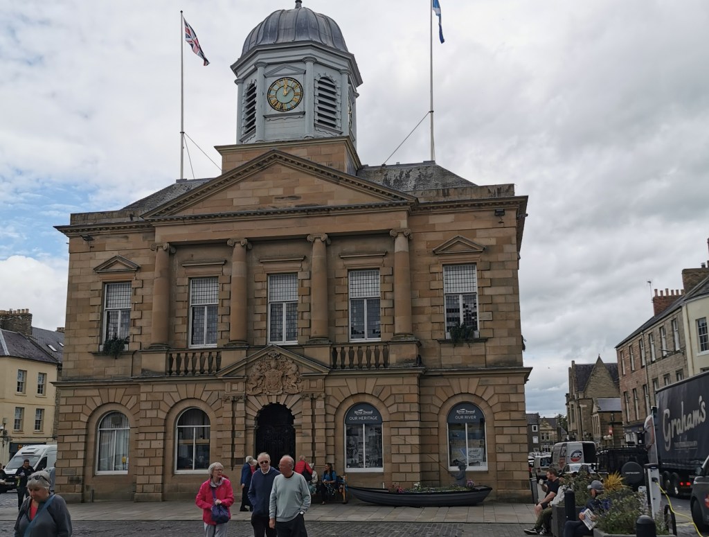 Ted and I decided to break our bus journey to Kelso in Coldstream. My English wrinkly free bus pass doesn’t apply in Scotland (and vice versa for Scottish passholders) and there’s no Scottish equivalent of the current £3 single fare limit so it cost me £5.90 for the journey, though only the final mile was in Scotland. Not complaining – it was a pleasant journey. We had a brief wander around Coldstream and looked at the view across the Tweed from Henderson Park, then went for a beer.