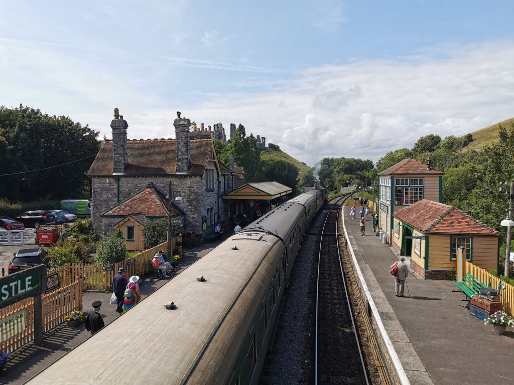 At Wareham we transferred to the Swanage Railway for the ride through Purbreck by heritage diesel class 117 train to Corfe Castle then on by steam train.