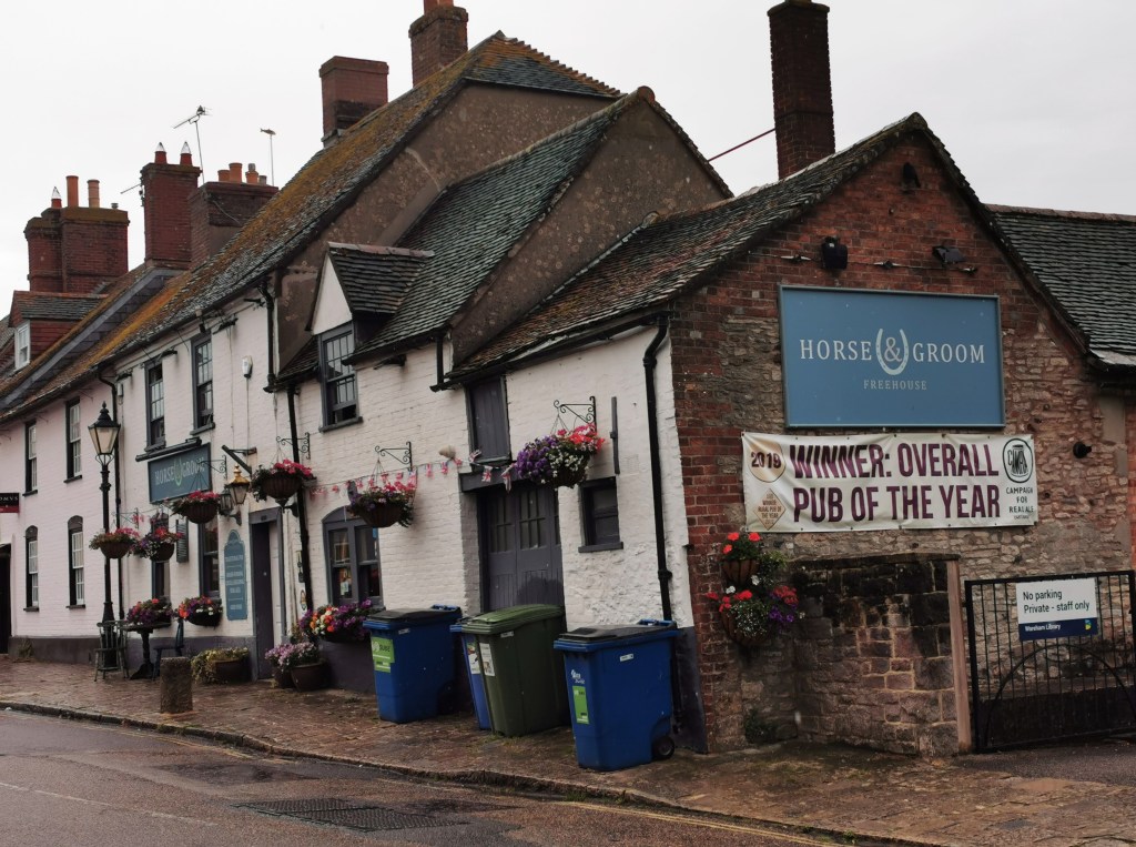 Our pIans for the full day on the Isle of Purbreck (it isn’t an island) were scuppered by horrific weather – it didn’t stop pouring with rain all day. We had hoped to visit the Square and Compass in Worth Matravers but the lack of a bus service and the weather put paid to that. Instead we caught a bus back to Wareham for a drink of lunch in the Horse and Groom (pictured).