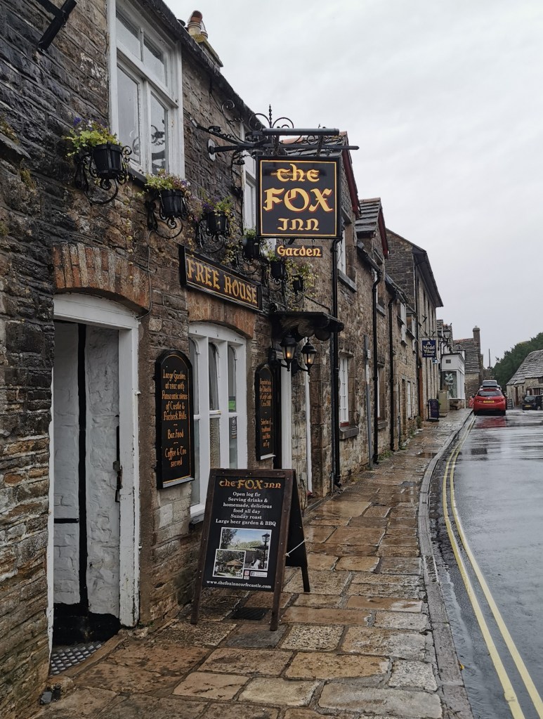 We then stopped off in Corfe Castle and visited the excellent Fox Inn, where we got soaked just making our way to the outside toilet.