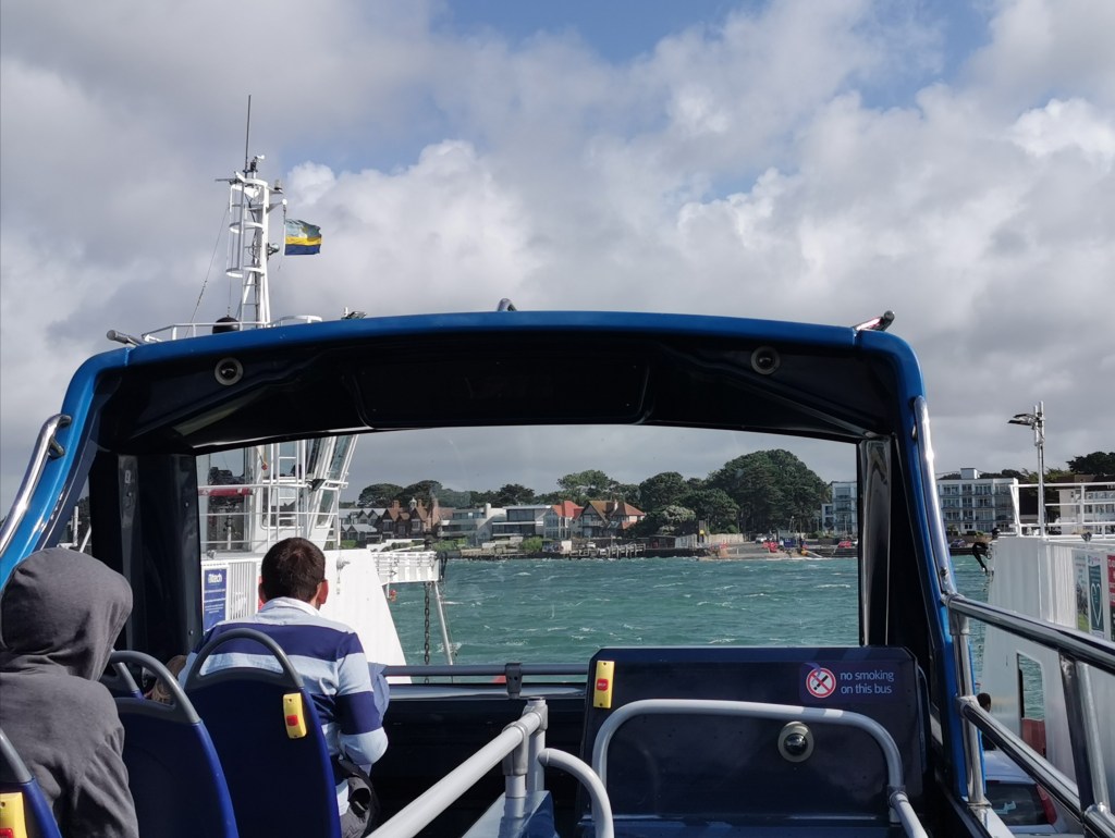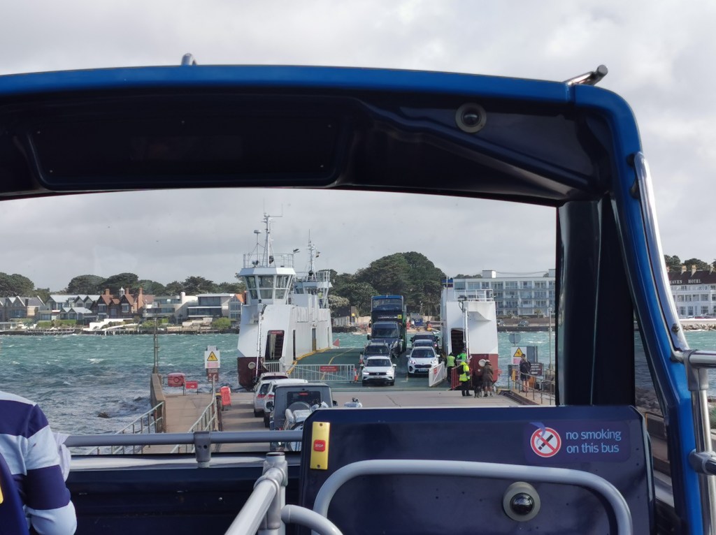 The journey to Exmouth involved a bus from Swanage to Bournemouth, train to Weymouth, bus to Bridport, bus to Axminster via Lyme Regis, train to Exeter, train to Exmouth and a local bus to our hotel. The bus journey to Bournemouth takes 75mins, is an open topper and includes a trip on the ferry to Sandbanks. Fortunately it was dry, though high winds were blowing the branches of the roadside trees against the bus and showering us with leaves.The vehicle chain ferry across Poole Harbour dates from 1923 and the current boat from 1994.