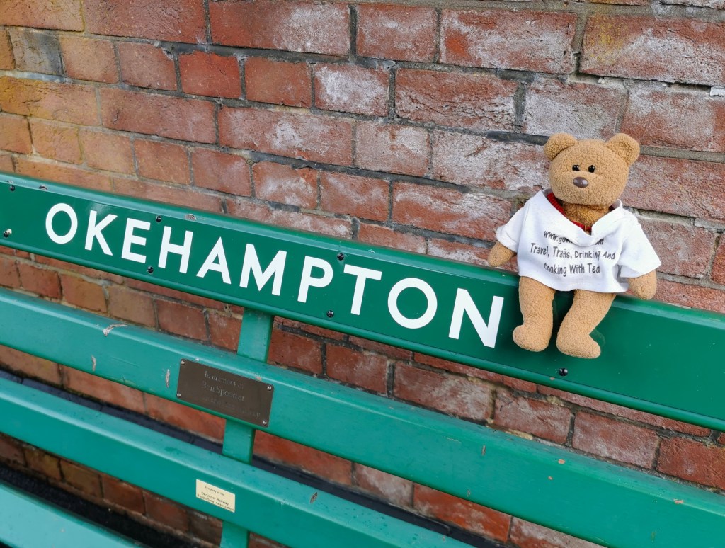 Okehampton station is at the top of a long, steep hill above the town centre. In both directions it is worth catching the connecting bus. We spent a pleasant few hours wandering around from pub to pub – it was the Okey music festival, pubs were busy and gearing up for live acts – our favourite was the Fountain Inn.