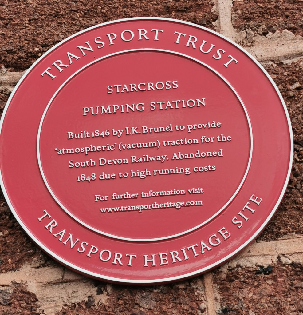 The following day we took the Starcross Ferry across the estuary of the River Exe – it had been cancelled the two days previously, due to high winds. Near the pier and station is a pumping station for Brunel’s Atmospheric Railway – it only operated from 1846 to 1848 and today there is no public access – only a plaque on the wall.